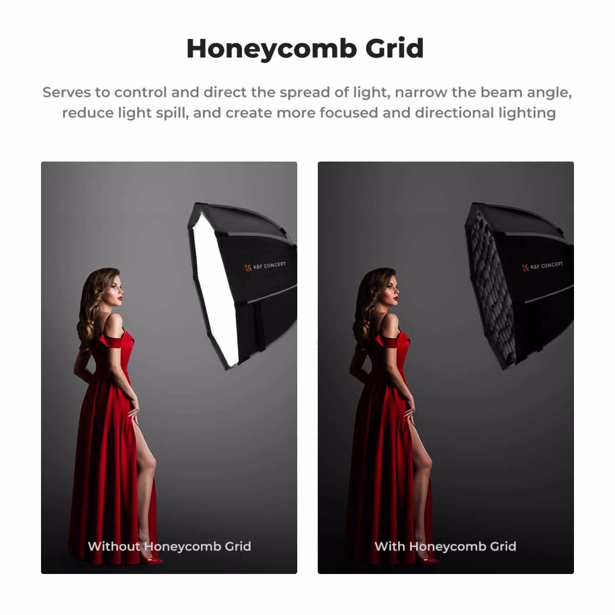 • Included Honeycomb Grid, provides precise light direction and superior spill control, shaping light effectively.