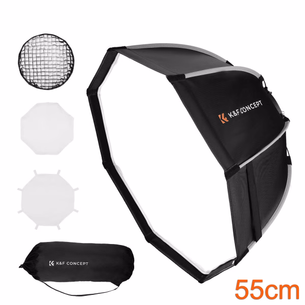 The K&F Concept 55cm Octagonal Softbox is more than just a light modifier; it's a meticulously engineered solution designed to elevate your photographic and videographic output. Its unique octagonal shape, dual diffusers, and precise honeycomb grid offer unparalleled control over light quality, creating flattering illumination and natural catchlights for portraits, products, livestreams, and weddings. With its rapid quick-release mechanism, foldable and lightweight design, and universal Bowens mount compatibility, this softbox integrates seamlessly into any professional workflow, providing versatile, efficient, and portable lighting solutions. K&F Concept is committed to empowering your creative journey with reliable, high-utility gear. Invest in precision lighting today and experience the transformative difference this softbox brings to your work.