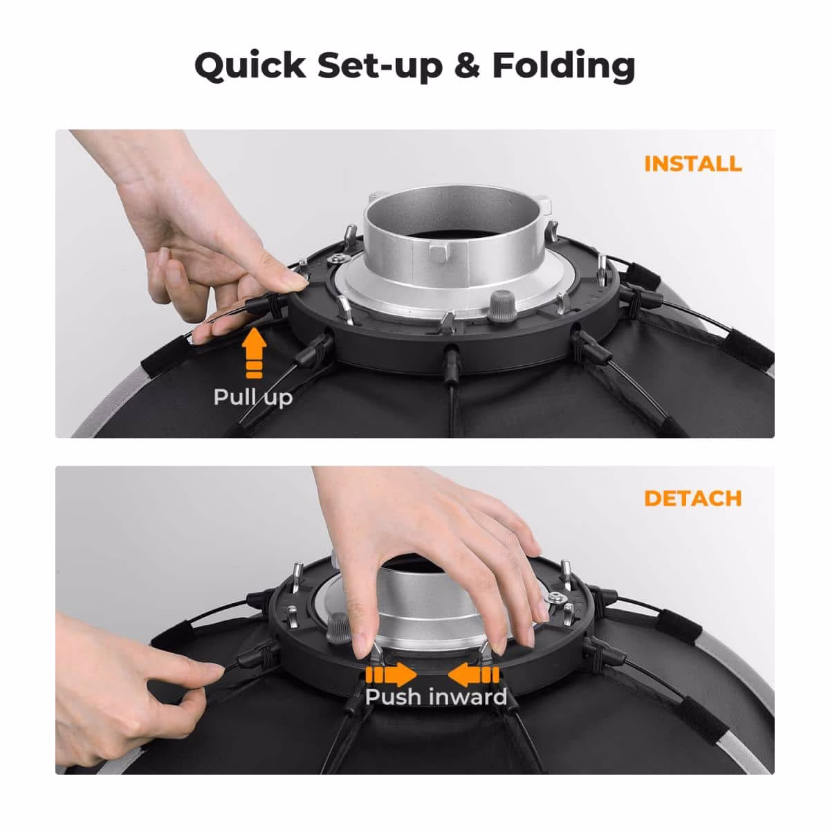 In the fast-paced world of photography, efficiency is not just a convenience – it’s a necessity. The K&F Concept 55cm Octagonal Softbox features an innovative quick-release mechanism, a lever-based system engineered for rapid assembly and disassembly. This intuitive design allows you to deploy or collapse the softbox in seconds, dramatically boosting your shooting workflow efficiency. Imagine being on location, adapting to changing light or moving between sets; with this softbox, setup and breakdown become swift, non-disruptive processes. This quick-release functionality means less time spent wrestling with gear and more time dedicated to capturing the perfect shot, ensuring you remain agile and responsive in any shooting environment, from bustling wedding venues to dynamic corporate events.