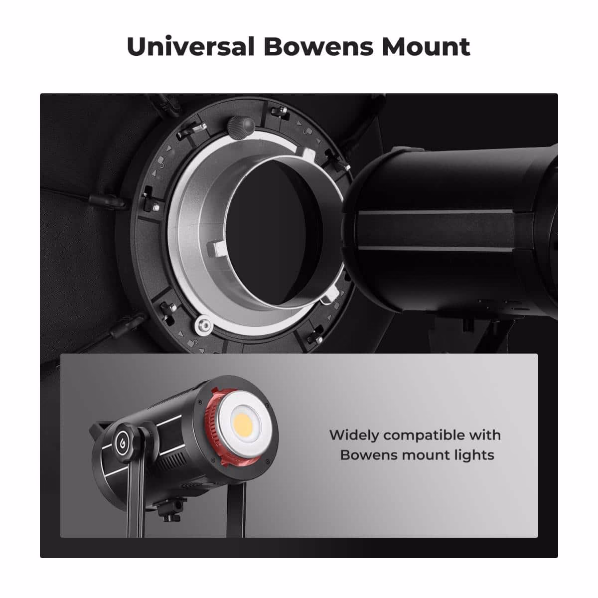 • Bowens Mount Compatibility ensuring wide integration with professional studio lighting.
