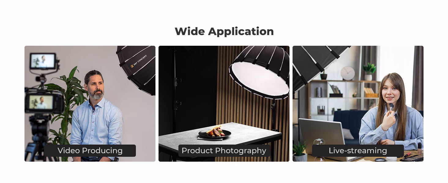 • Compatibility: COB lights, studio strobe lights, continuous LED video lights (with Bowens mount)