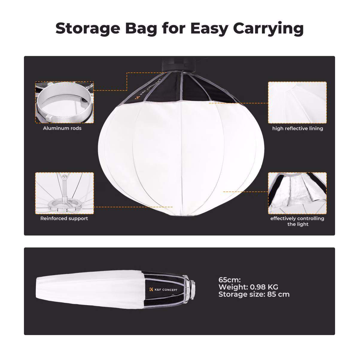 For the discerning shutterbug and technophile, the K&F 65cm Lantern Softbox (KF18.0009) is your essential tool for transforming challenging lighting scenarios into opportunities for photographic excellence. This spherical, portable lighting accessory is meticulously engineered to deliver omnidirectional, soft, and multi-directional light, essential for achieving professional-grade illumination across a myriad of shooting environments. Understanding that your creative workflow often faces bottlenecks, K&F Concept has designed this softbox for rapid installation and effective light control, ensuring you spend less time on setup and more time capturing your vision. As your trusted partner in photography and technology accessories, K&F Concept is committed to providing tailored solutions that elevate your craft and solve real-world problems, all while embodying an engineering DNA rooted in rigorous testing and user-centric innovation.