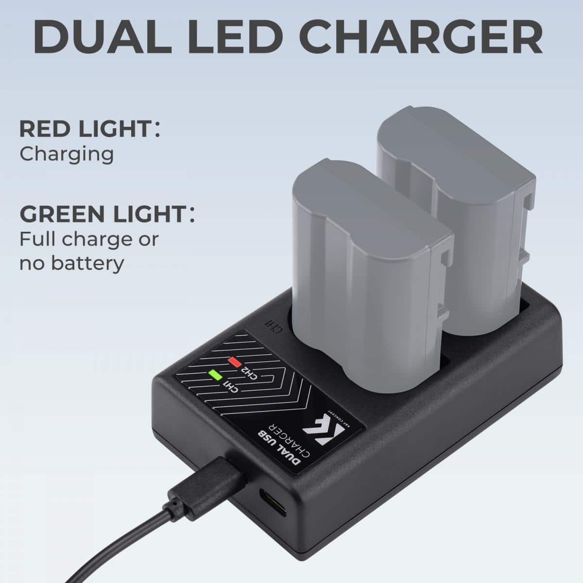 – Dual Charger with 2 Charging Ports to quickly charge two EN-EL15 batteries at the same time