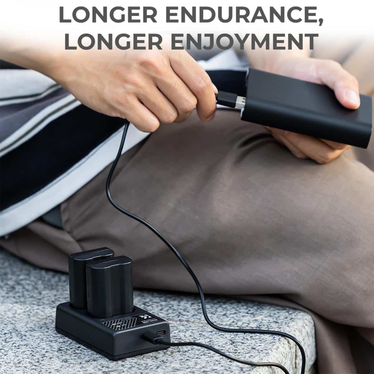 If you already own more than one battery, it makes sense to own a charger that can charge two batteries at the same time. Modern cameras, especially mirrorless models are very power hungry. Especially when recording video. Bolster your kit with a charger so versatile that it can even run off a power bank for exceptional portability and it charges two batteries simultaneously. All this with an intelligent chip providing 8 forms of protection to ensure battery health and longevity.