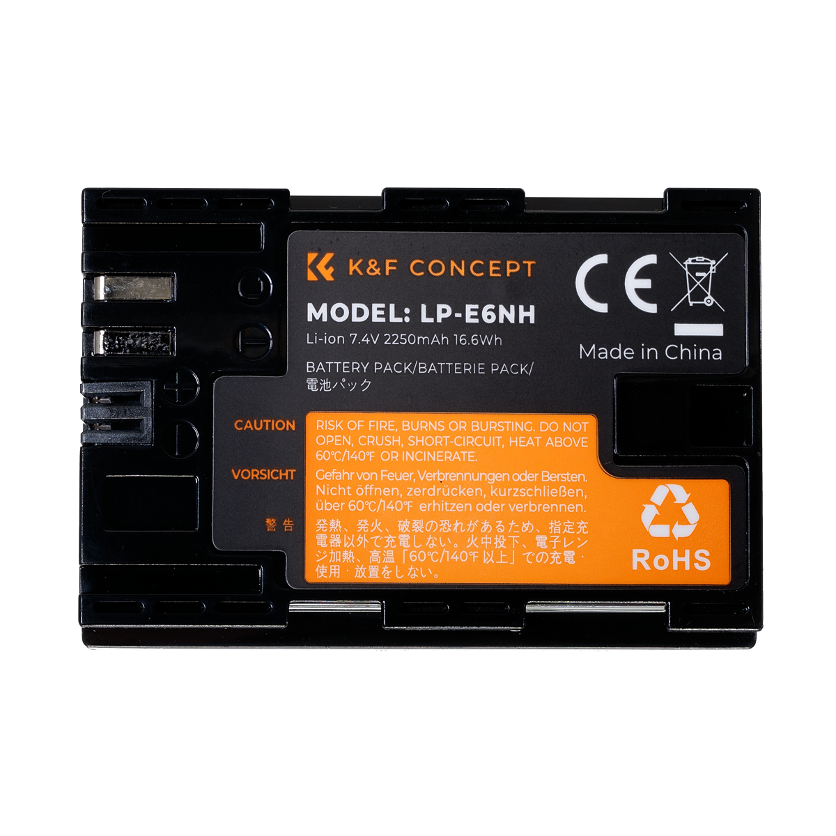 K&F Concept camera batteries like this, Canon LP-E6NH equivalent, are made with Lithium-ion battery chemistry, for safe reliable performance. Among the advantages of using lithium for batteries is that they have no “memory effect”. This is when a battery is depleted and thereafter is never able to charge up to the full capacity. Our batteries are certified to the stringent criteria of CE and RoHS requirements, further ensuring their safety and your peace of mind. These batteries carry a 1 year warranty to protect you from any manufacturing defects or faults.