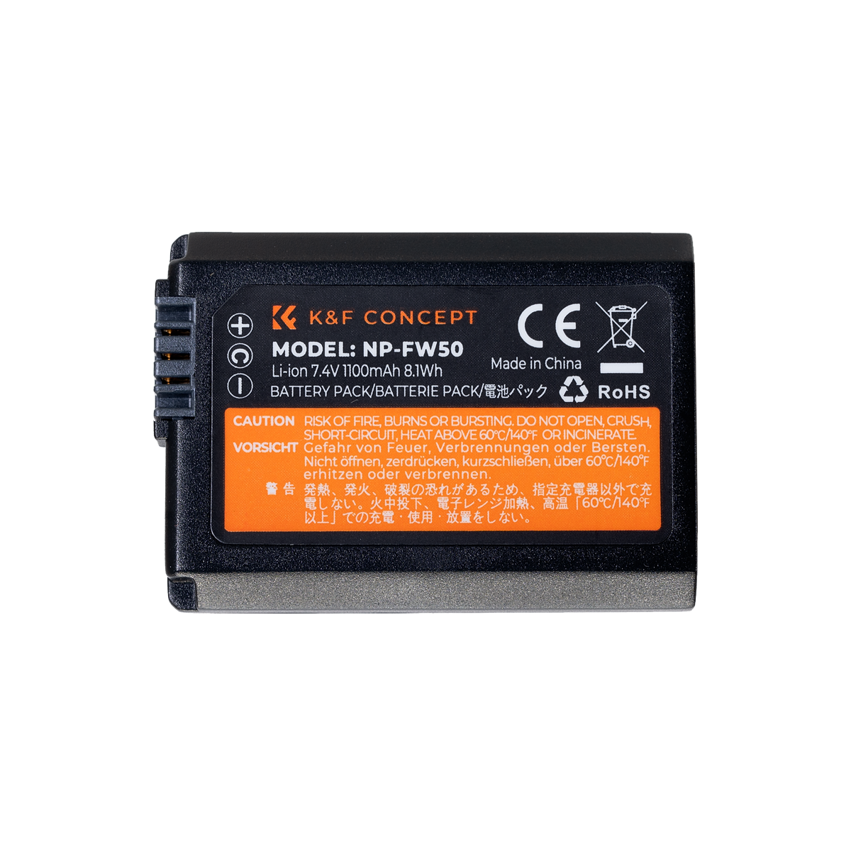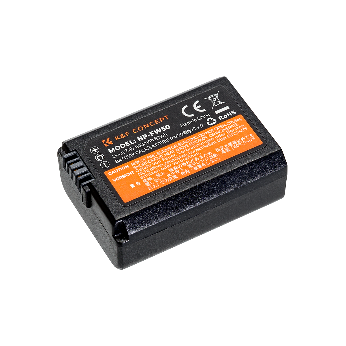 K&F Concept camera batteries like this, Sony FW-50 equivalent, are made with Lithium-ion battery chemistry, for safe reliable performance. Among the advantages of using lithium for batteries is that they have no “memory effect”. This is when a battery is depleted and thereafter is never able to charge up to the full capacity. Our batteries are certified to the stringent criteria of CE and RoHS requirements, further ensuring their safety and your peace of mind. These batteries carry a 1 year warranty to protect you from any manufacturing defects or faults.