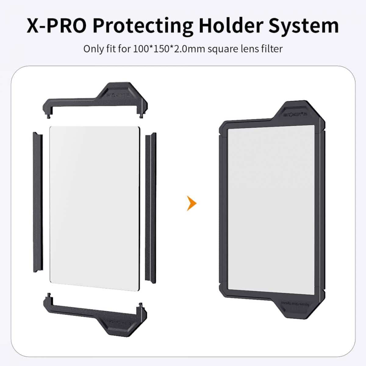 A protective holder to clip on the boarder of glass filters, encasing them for the K&F X-Pro Filter System.